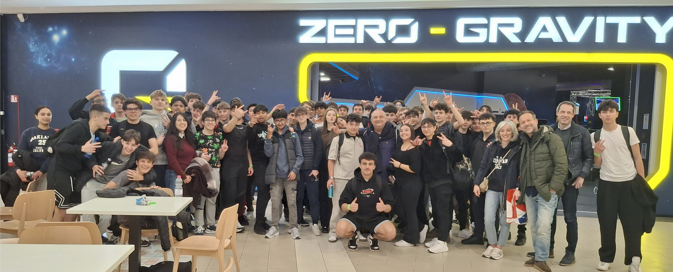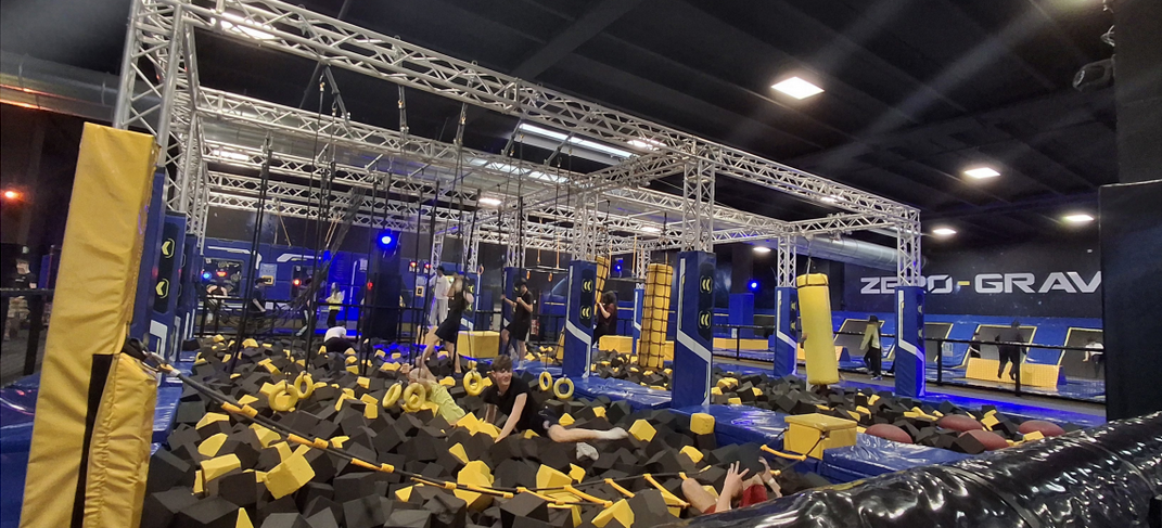 In seguito, il pomeriggio ci siamo recati allo ZERO-GRAVITY di Stezzano (BG), situato presso il centro commerciale “Le due torri”, un enorme parco trampolino e centro sportivo dedicati ad attività acrobatiche, freestyle e parkour. È possibile saltare su tappeti elastici, fare acrobazie nelle vasche di gommapiuma, praticare basket acrobatico, percorsi ninja, arrampicate e tessuti aerei.